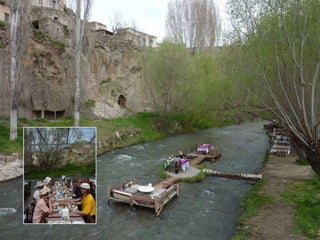 Le document décrit une visite à un café turc sur la colline Pierre Loti et une exploration du caravanserail Agzikarahan, situé à Hoca Mesut, construit en 1230. Il met en avant l'importance historique et culturelle de ces lieux. L'accent est mis sur l'expérience immersive de la culture turque.