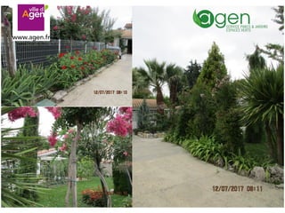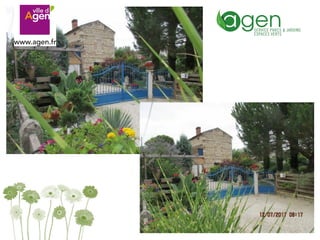 Le document annonce le concours communal des maisons fleuries de la ville d'Agen pour l'année 2017. Il remercie tous les participants et exprime l'espoir de les revoir l'année prochaine.