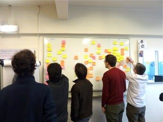 Le document présente un projet de développement de jeu vidéo où l'évolution de la gestion agile est mise en avant. Deux chefs de projet, Bill et Bob, illustrent différents aspects de l'approche agile, comme la définition des user stories, la planification par le poker et l'itération à travers le feedback client. À la fin, malgré des défis budgétaires, le projet est un succès et le client est satisfait des résultats obtenus.