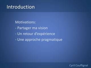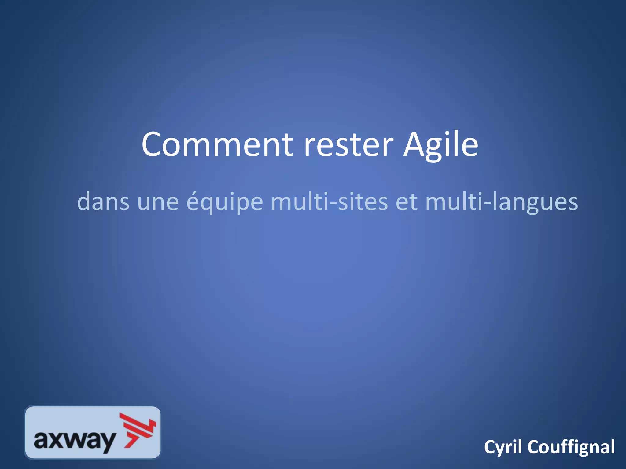 Le document présente des stratégies pour maintenir l'agilité dans une équipe multi-sites et multi-langues. Il aborde l'organisation de l'équipe, les cycles de vie des projets, ainsi que les méthodes de communication et de travail collaboratif. La méthodologie met l'accent sur la communication, l'initiative individuelle et l'adaptabilité au changement.