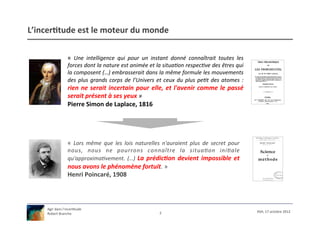 Le document aborde la notion d'incertitude comme moteur du monde, soulignant l'importance de naviguer à travers l'inconnu en ajustant nos décisions et en confrontant nos perceptions. Il met en avant la nécessité de se libérer du passé, de se concentrer sur le futur et d'agir immédiatement face à l'incertitude croissante. Enfin, il identifie des modes d'action privilégiés, notamment la recherche de la facilité, l'ajustement de la vitesse d'exécution et l'adoption d'une attitude de paranoïaque optimiste.