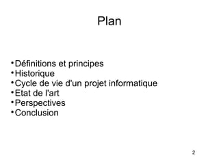 Le document traite des ateliers de génie logiciel (AGL) et de leur évolution historique, en passant par les principes fondamentaux et les impacts sur le développement logiciel. Il explore les avantages et inconvénients des AGL, les transformations apportées par l'émergence du web, et leur état actuel face aux nouvelles méthodes de modélisation. En conclusion, le texte pose des questions sur l'avenir des AGL et du développement agile.