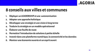 Les ateliers d'Agoria ont permis aux acteurs technologiques et à la ville de Louvain de se connecter et d'explorer des thèmes liés aux données ouvertes et aux smart cities. Ils ont également permis d'identifier des besoins mutuels et ont souligné l'importance d'une collaboration annuelle. Par ailleurs, le document aborde divers indicateurs environnementaux et démographiques prévoyant une croissance de la population et des défis liés à la mobilité et au climat dans les villes belges d'ici 2060.