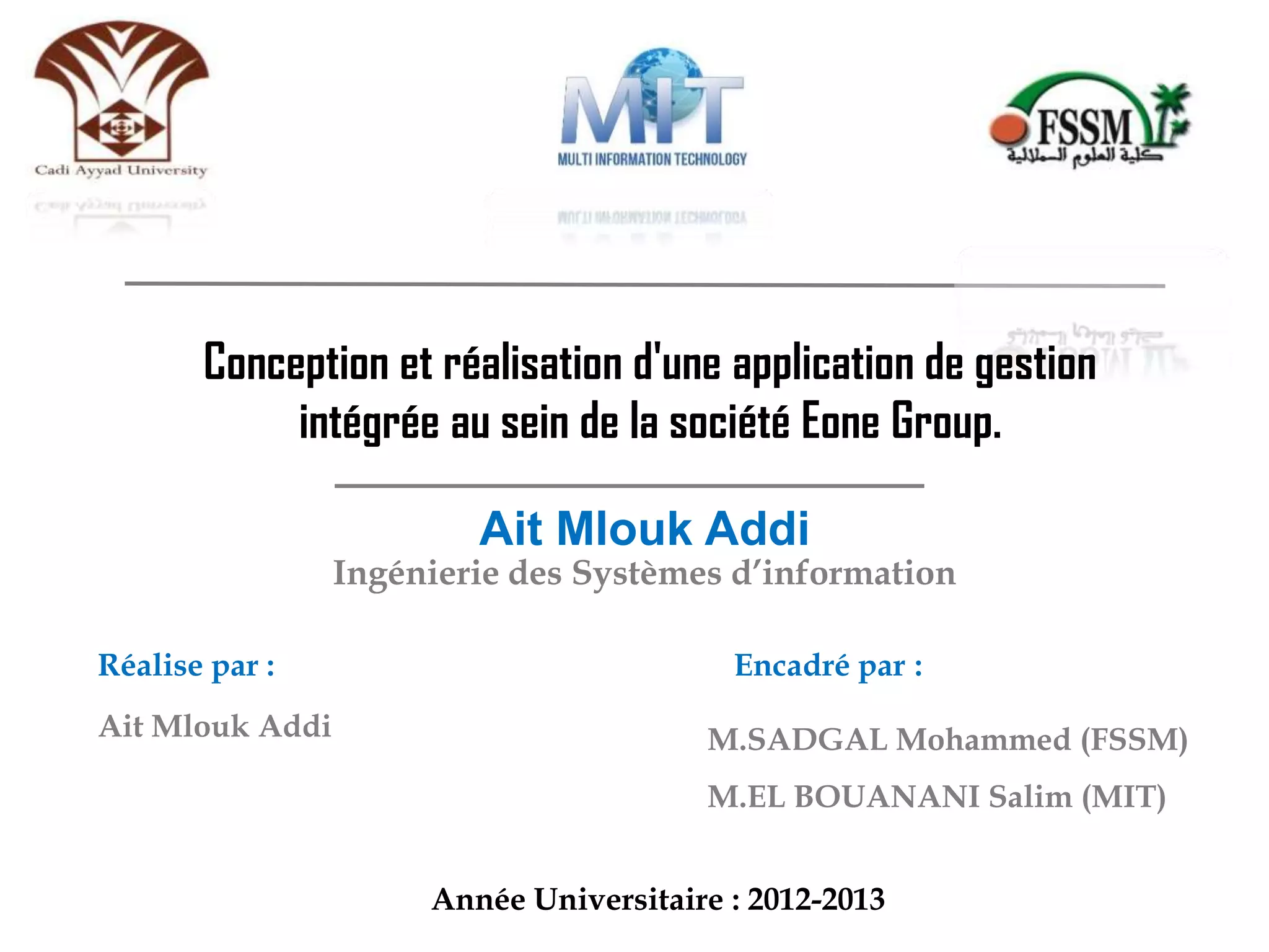 Le document présente le développement et la mise en œuvre d'une application de gestion intégrée pour la société eone group, visant à optimiser la gestion des processus internes et des flux de données. Il aborde l'analyse des besoins, la conception technique, les différents modules fonctionnels comme la gestion des ventes et de la comptabilité, ainsi que le paramétrage de la solution ERP. En conclusion, le projet a réussi à atteindre ses objectifs tout en ouvrant des perspectives pour des améliorations futures.