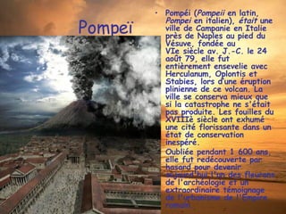 Le document traite de diverses catastrophes naturelles et écologiques, telles que l'éruption de Pompéi, les tsunamis, les chutes de météorites, les ouragans, les tremblements de terre et les accidents nucléaires. Il souligne l'impact dévastateur de ces événements sur les écosystèmes et la santé publique, ainsi que le phénomène de pollution qui en résulte. En outre, il met en évidence la nature humaine de certaines catastrophes écologiques liées à des activités anthropiques.
