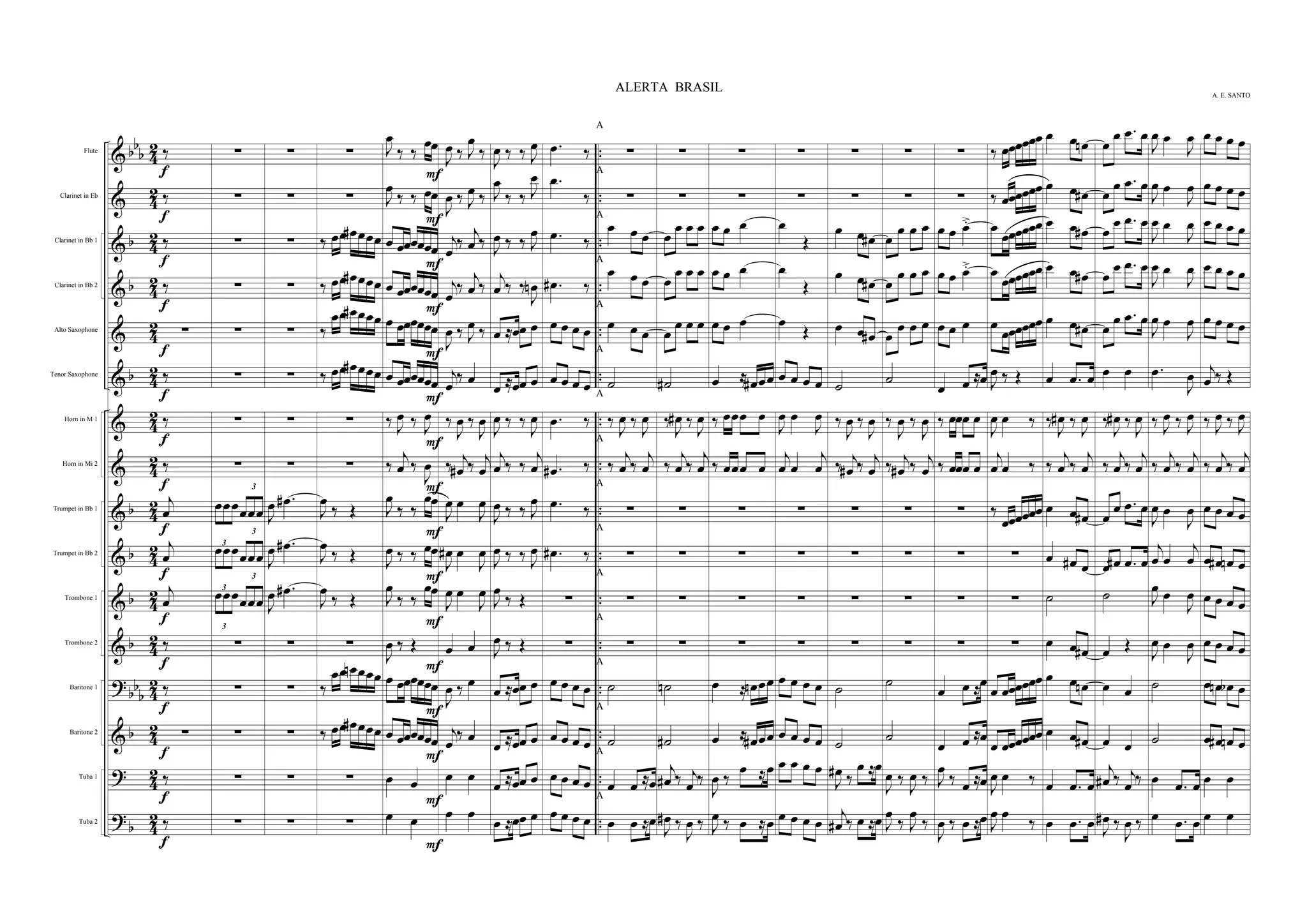 Le document semble contenir des notations musicales variées, avec des symboles et des indications pour divers instruments de musique tels que la clarinette, le saxophone et les cuivres. Les segments de texte incluent également des chiffres et des lettres qui peuvent représenter des mesures ou des annotations spécifiques. Globalement, il semble s'agir d'une partition ou d'un arrangement musical complexe.