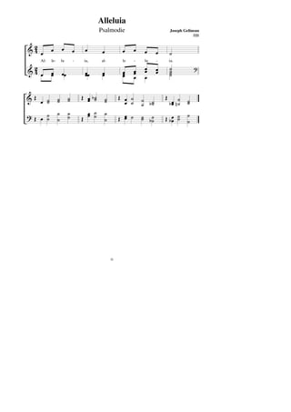 Le document présente une psalmodie intitulée 'Alleluia' de Joseph Gelineau. Il contient des indications de notation musicale et des repères mélodiques. Le texte suggère une structure chantante à deux sections.