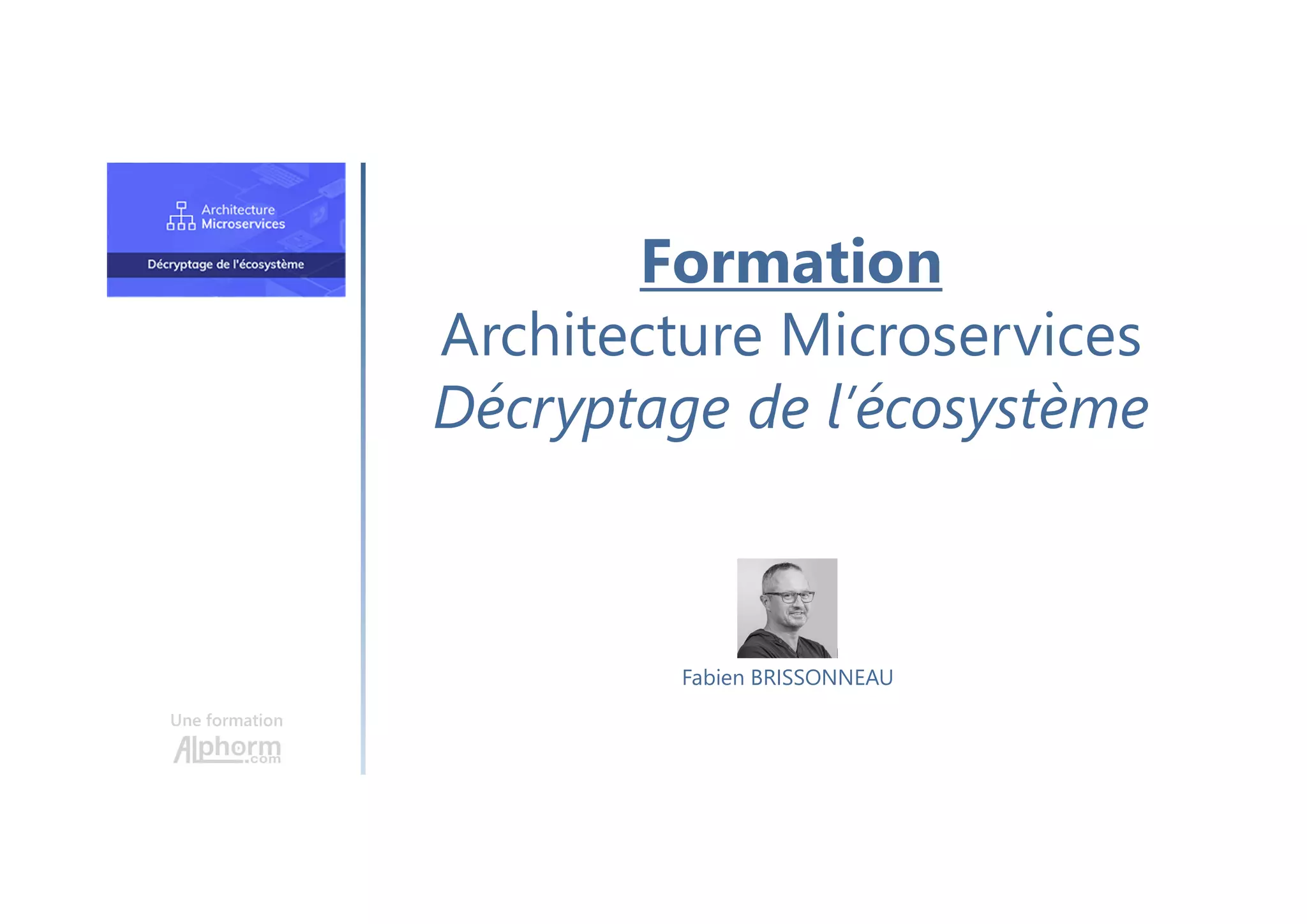 Ce document présente une formation sur l'architecture des microservices, couvrant des sujets tels que la communication entre services, le développement, l'exécution et le déploiement à l'aide de technologies comme Docker et Kubernetes. Il aborde également les méthodologies agiles et DevOps, soulignant l'importance de la collaboration entre les équipes de développement et d'exploitation. Enfin, il fournit des détails sur la mise en œuvre pratique à l'aide d'outils comme Spring Boot et ASP.NET, ainsi que le monitoring des déploiements dans des environnements cloud tels que Google et Azure.
