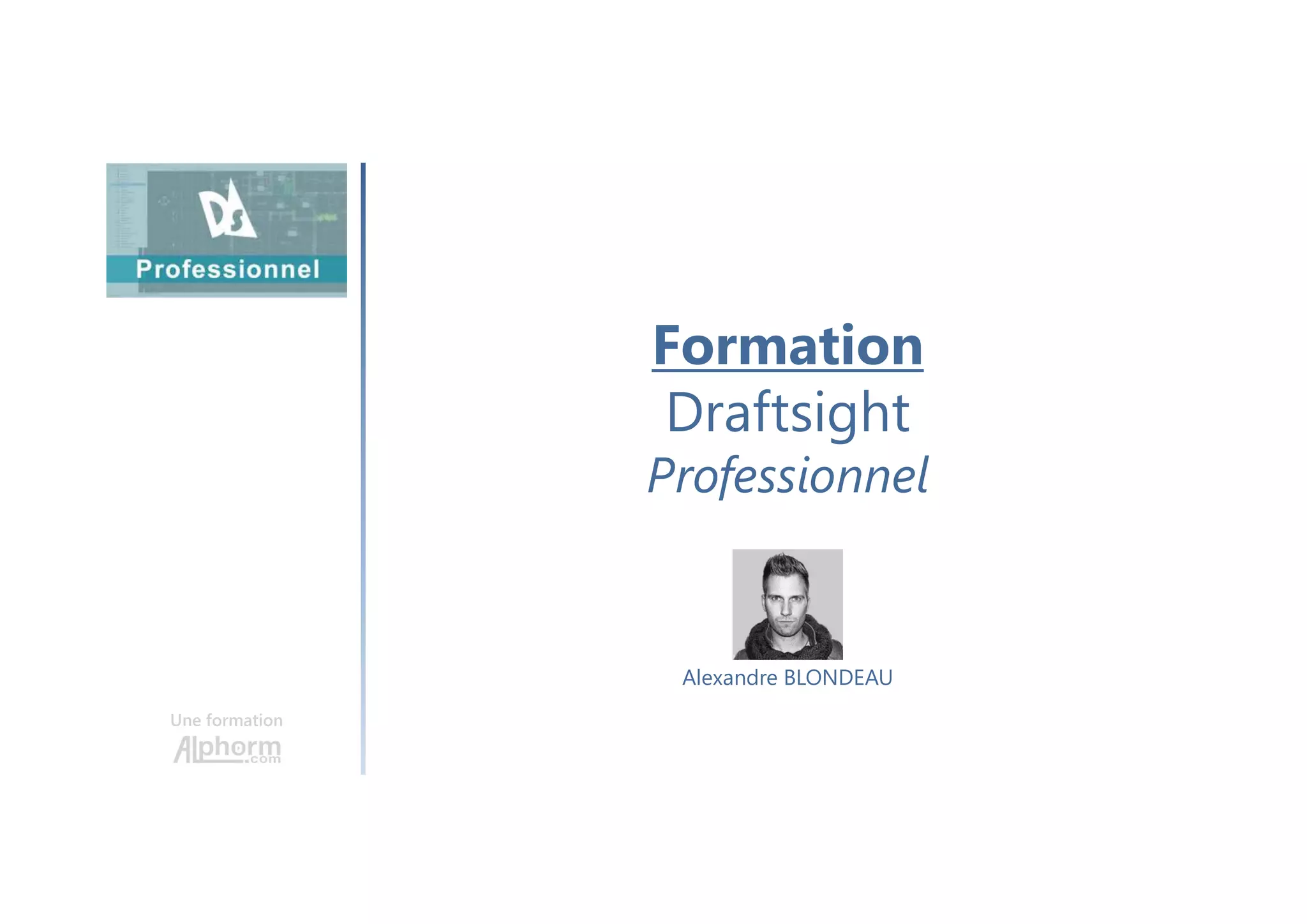 Le document décrit une formation sur le logiciel DraftSight, couvrant des sujets tels que l'administration, les dessins mécaniques, les connexions à vis, et la création de nomenclatures. Il cible principalement des professionnels tels que les concepteurs, dessinateurs et ingénieurs. La formation se compose de présentations, démonstrations en direct et d'exercices pratiques.