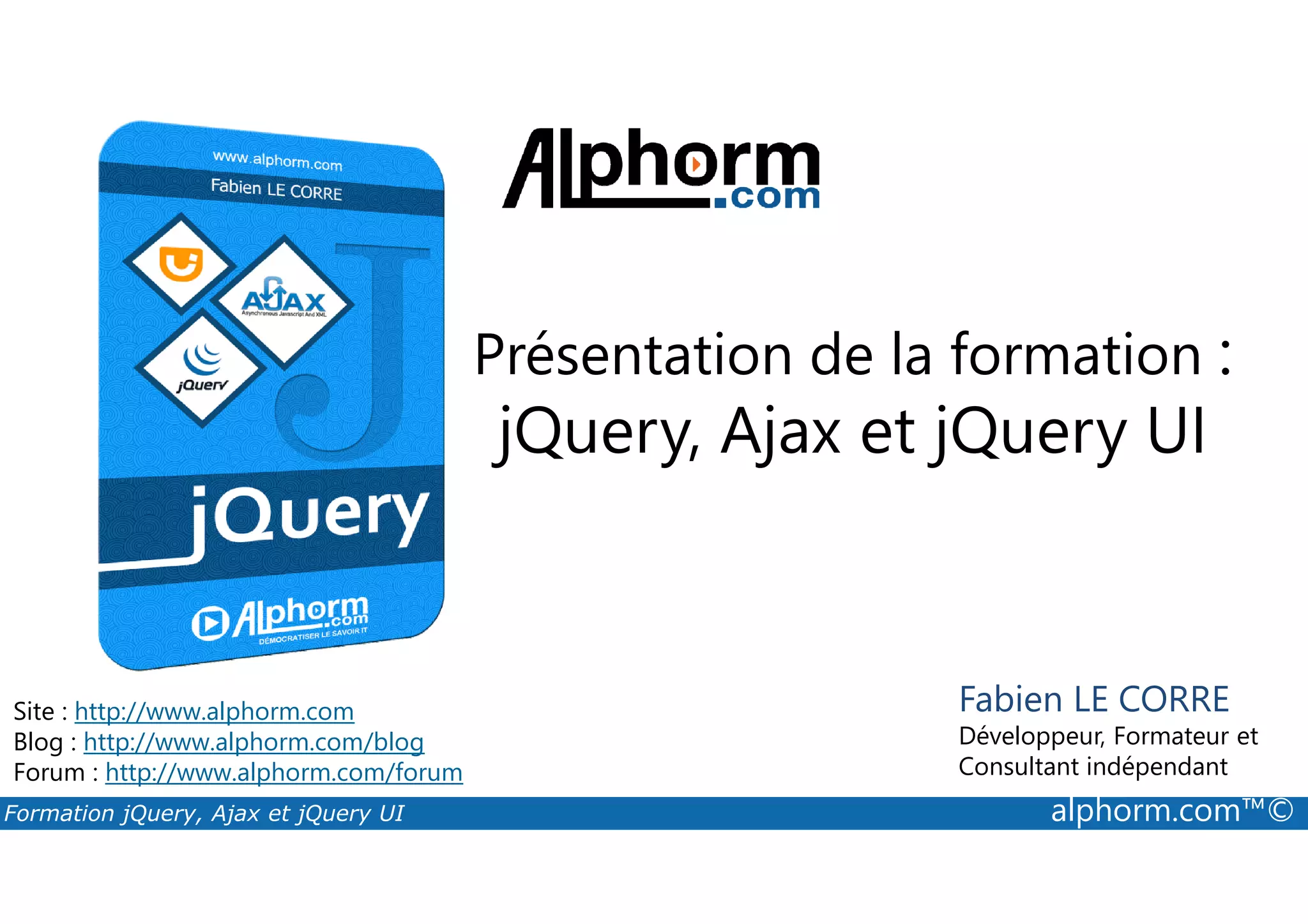 La formation 'jQuery, Ajax et jQuery UI' proposée par Fabien Le Corre, développeur et formateur, s'adresse aux développeurs souhaitant améliorer l'expérience utilisateur sur le web. Elle couvre les bases de jQuery, les manipulations DOM, la gestion des événements et la création d'applications Ajax, tout en exigeant des connaissances préalables en HTML, CSS, et JavaScript. Les participants apprendront à réaliser divers projets pratiques, tels que des systèmes de navigation par onglet et de fiches produits.