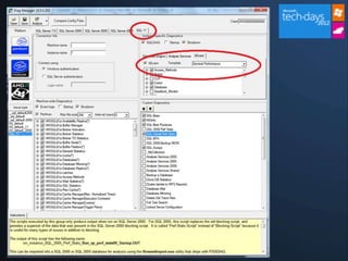 Le document présente une analyse approfondie et des techniques d'optimisation des performances du moteur SQL Server, mettant l'accent sur la gestion de la mémoire, les index, et les outils d'analyse. Il explique l'importance des index, en particulier les index Columnstore, et fournit des exemples de performances via des requêtes spécifiques. Enfin, il aborde les meilleures pratiques pour capturer des événements de performance et l'utilisation de divers outils comme SQL Profiler, DTA, et PSSDIAG pour améliorer l'efficacité des systèmes SQL.