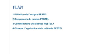 L'analyse PESTEL est un outil stratégique permettant d'évaluer l'environnement global d'une entreprise à travers six composantes : politique, économique, sociologique, technologique, écologique et légal. Cette méthode aide à identifier les opportunités et menaces du macro-environnement et guide les décisions stratégiques. Elle est cruciale pour les études de marché et l'élaboration de plans marketing annuels.