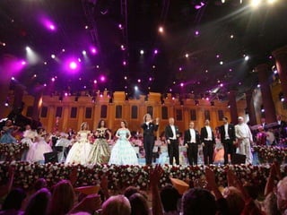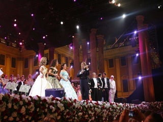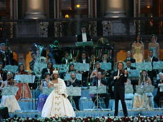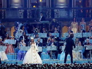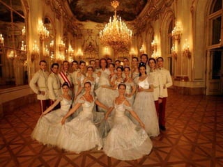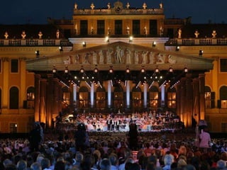 André Rieu se produira en concert au château de Schönbrunn à Vienne les 14 et 15 juillet 2006, un palais baroque construit sur les ruines d'un ancien château. Le document décrit la splendeur de l'intérieur du château, notamment la grande galerie et la chambre aux miroirs où Mozart a donné son premier concert. Il est précisé que ce diaporama est privé et non destiné à un usage commercial.