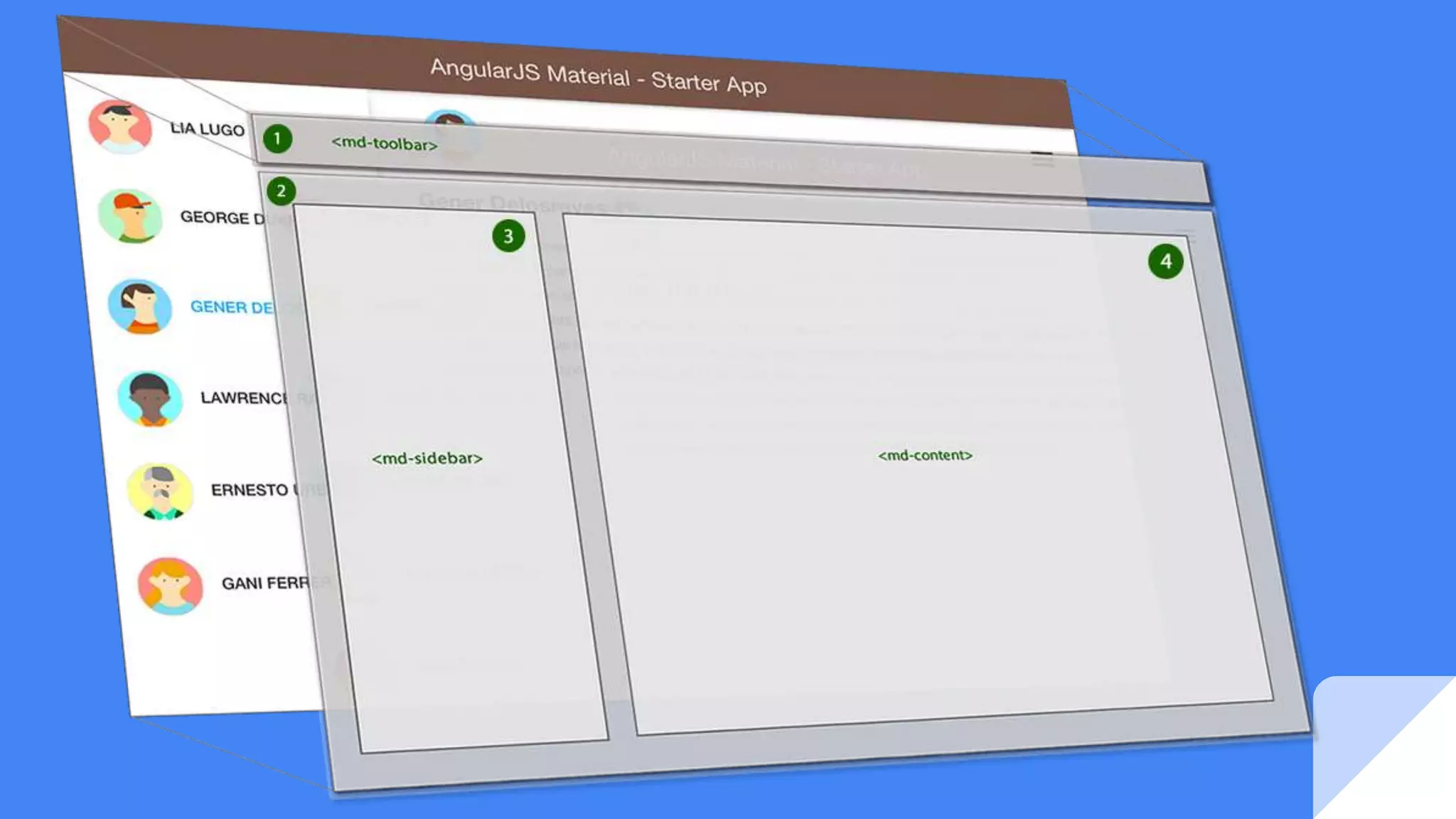 AngularJS est un framework JavaScript open-source développé par Google, qui utilise le modèle MVC côté client pour créer des applications web monopages (SPA). Il permet de créer des composants réutilisables et inclut un système de routage pour charger des pages via AJAX. Angular Material fournit des composants spécifiques au design matériel pour enrichir l'interface utilisateur.