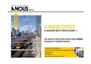 Le magazine 'À Nous Cities' propose une exploration urbaine à travers une nouvelle collection de hors-séries, mettant en avant les tendances et événements culturels des grandes villes. Avec des numéros dédiés à des destinations variées comme Medellin, Berlin, et Dubaï, il présente divers sujets allant de la mode à l'art. Sa distribution se concentre sur plus de 250 lieux dans des quartiers parisiens emblématiques, avec des options de publicité ciblées pour les annonceurs.