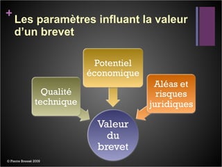 Le document aborde l'évolution des méthodes d'évaluation financière des innovations en mettant l'accent sur divers paramètres influençant la valeur d'un brevet, tels que le coût d'évaluation, la liberté d'exploitation, et la validité intrinsèque. Il propose également des méthodes d'analyse, incluant des scénarios et des portefeuilles, pour estimer la valeur et les redevances des innovations brevetées. Des exemples et des données chiffrées sont fournis, illustrant le processus d'évaluation dans le secteur de l'équipement automobile.