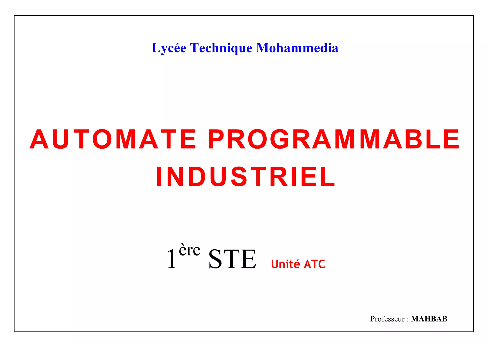 Le document présente une analyse fonctionnelle de la partie commande d'un système automatisé, en décrivant la structure d'un système automatisé, le cahier des charges d'un automatisme logique, et introduit le Grafcet comme outil graphique pour spécifier le fonctionnement de systèmes séquentiels. Il aborde également les règles de syntaxe et les différentes structures de Grafcet, ainsi que des exemples pratiques de fonctionnement, tels que celui d'un poste de perçage automatique. Enfin, il explique les caractéristiques des capteurs utilisés dans le système pour acquérir des informations sur les grandeurs physiques.
