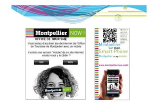 Le document présente l'importance d'un site mobile pour le tourisme à Montpellier, soulignant les avantages d'accessibilité, de coûts réduits et de mise à jour des données. Il décrit les fonctionnalités du site mobile www.montpelliernow.mobi et propose des stratégies pour augmenter le trafic et l'engagement des utilisateurs. Enfin, il aborde les limites du site mobile et les projets futurs, incluant une application et des améliorations pour renforcer l'interaction avec les touristes.