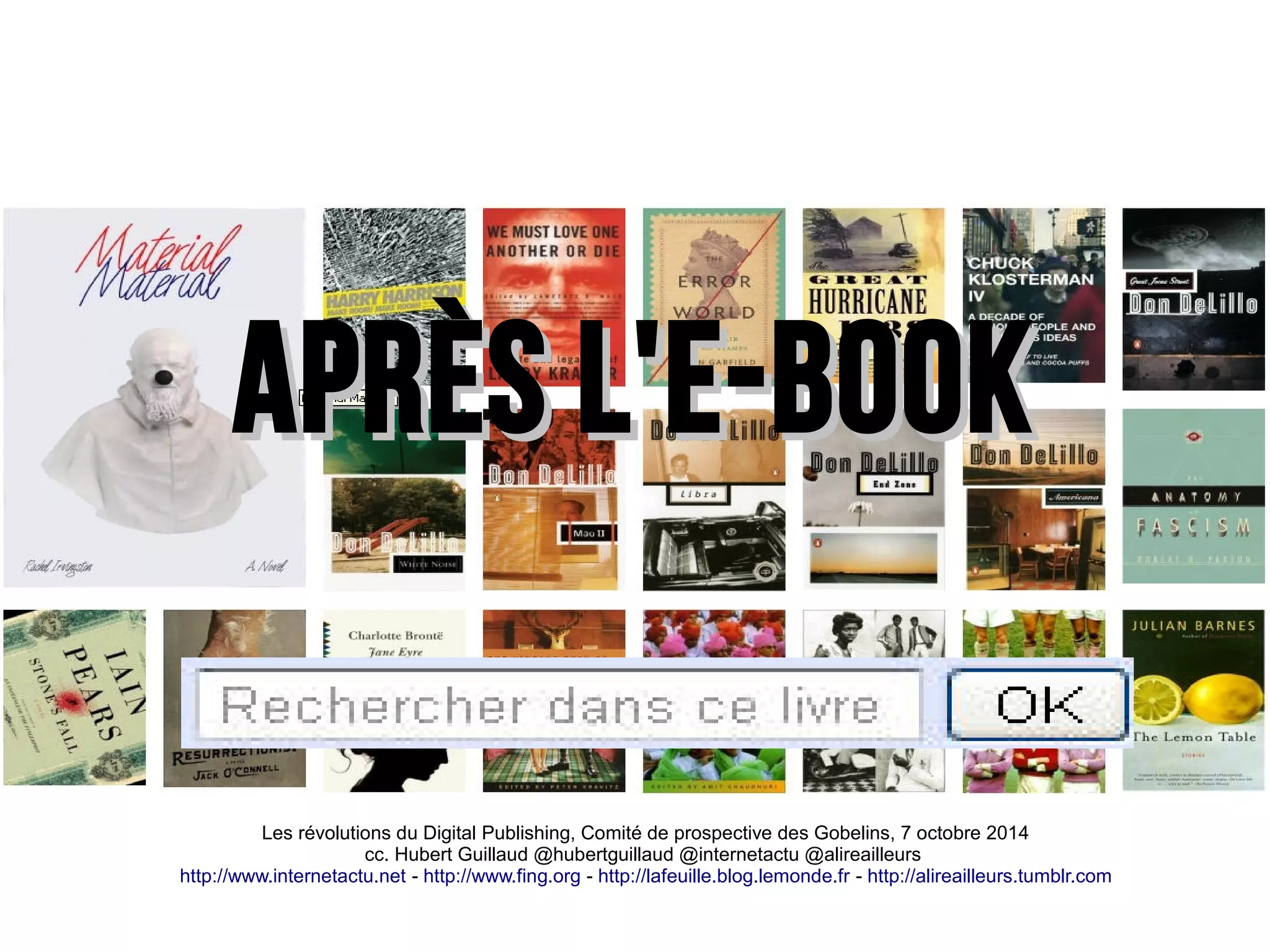 Le document aborde les évolutions du livre numérique et les défis posés par le digital publishing, en mettant l'accent sur les relations entre les lecteurs et les contenus. Il évoque également les nouvelles formes d'interaction et d'accès aux livres, tout en considérant les implications économiques et technologiques de ces transformations. Enfin, il souligne l'importance de la personnalisation dans le futur de la lecture et des contenus numériques.
