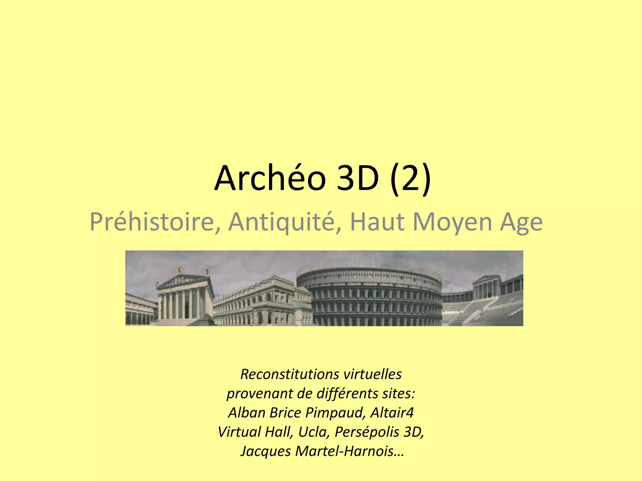 Le document présente plusieurs reconstitutions virtuelles de sites archéologiques allant de la préhistoire à l'Antiquité et au haut Moyen Âge, mettant en avant des projets menés par divers experts et institutions. Il aborde des sites notables comme la grotte de Lascaux, les habitations lacustres de Chalain, l'Acropole d'Athènes, ainsi que des structures romaines et byzantines, et propose une carte de l'Andalousie arabe. En outre, le document inclut des exemples de maquettes virtuelles basées sur des relevés archéologiques pour enrichir la compréhension de ces périodes historiques.