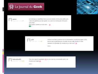 Le document présente les résultats financiers et la structure de la société Archos, spécialisée dans les systèmes et logiciels informatiques, ainsi que ses dirigeants principaux. Archos se distingue par ses tablettes G9, qui sont parmi les plus rapides sur le marché, et bénéficie d'une collaboration avec Google sur le système d'exploitation Android. Face à la concurrence d'Apple, Archos doit innover pour maintenir sa position sur un secteur technologique en constante évolution.