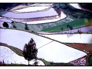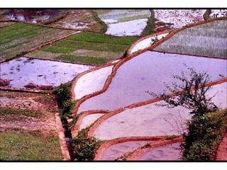 Le document exprime une admiration pour le travail acharné des agriculteurs dans les rizières, soulignant la beauté des paysages façonnés par leurs efforts. Il inclut des photos de Jean Delpech, un photographe amateur, et met en avant la dureté du labeur nécessaire pour cultiver le riz. Le texte se termine sur une note de promesse d'une bonne récolte, évoquant l'harmonie entre l'homme et la nature.