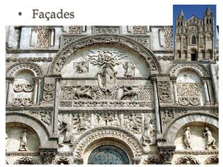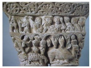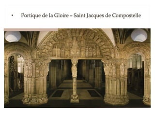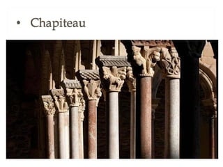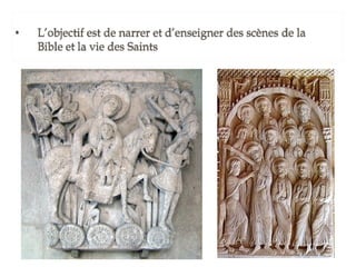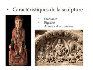 La leçon 6 aborde l'art roman comme un style majeur en Europe chrétienne du XIe au début du XIIe siècle, caractérisé par une architecture massive avec des murs en pierre, peu de fenêtres et des voûtes spécifiques. Ce style se manifeste dans les églises, châteaux et monastères, reflétant l'esthétique et la fonction de lieux de pèlerinage. Le document se divise en sections détaillant l'architecture, la sculpture et la peinture de cette période.