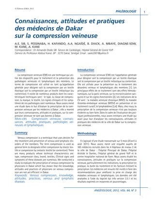 L'étude évalue les connaissances, attitudes et pratiques des médecins de Dakar concernant la compression veineuse, révélant un niveau de compétence insuffisant. La majorité des médecins prescrivent rarement cette thérapie, bien que certaines spécialités comme la chirurgie cardiovasculaire affichent de meilleures connaissances. Des recommandations sont proposées pour améliorer la formation médicale et faciliter l'accès aux ressources nécessaires pour une meilleure prise en charge des pathologies veineuses et lymphatiques.