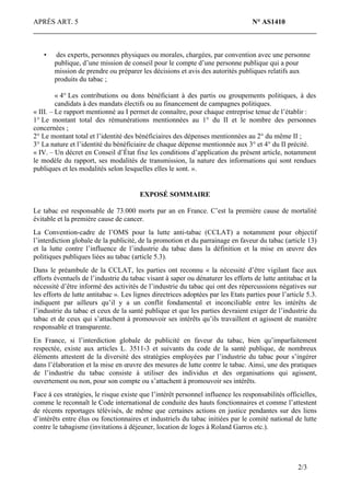 L'amendement proposé vise à introduire un article dans le code de la santé publique obligeant les fabricants et distributeurs de tabac à publier un rapport annuel sur leurs dépenses de publicité, de lobbying et de contributions politiques, afin de lutter contre l'influence de l'industrie du tabac dans les politiques publiques. Cela répond à un besoin de transparence face aux risques de conflits d'intérêts liés à l'interaction entre les acteurs du secteur tabac et les décideurs publics. Le texte s'inscrit dans le cadre des engagements de la France envers la Convention-cadre de l'OMS pour la lutte anti-tabac, visant à protéger la santé publique contre les intérêts de l'industrie du tabac.