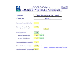 L'assemblée générale du centre socio-culturel 'Le Kiosque' de Benet a abordé la situation financière et les projets pour 2014, notamment l'obtention d'une subvention de la Caisse d'Allocations Familiales qui assure la continuité des activités. Malgré une croissance des adhérents et un engagement bénévole fort, la pérennité du centre reste incertaine face aux enjeux économiques et sociaux. Plusieurs initiatives ont été présentées, visant à renforcer le lien social, à favoriser l'accès aux services pour les populations défavorisées et à promouvoir les échanges culturels.