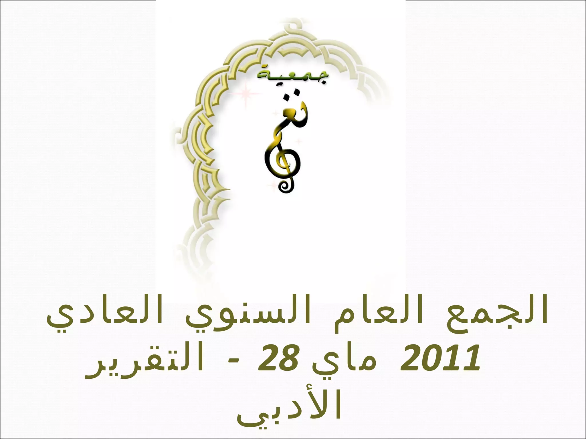 Le rapport présente les activités de l'association Nagham lors de l'assemblée générale du 28 mai 2011, visant à promouvoir la musique arabe et à soutenir les jeunes musiciens au Maroc. Les actions incluent des événements culturels, des conférences et des ateliers, ainsi que la création d'une chorale et l'organisation de soirées à thème. Enfin, la dernière conférence organisée portait sur le maître de la chanson arabe Mohamed Abdelwahab, en commémoration du 20ème anniversaire de sa décès.