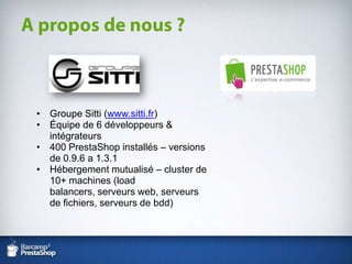 Le document aborde l'optimisation et la sécurisation du code pour PrestaShop, en se concentrant sur les meilleures pratiques en matière d'architecture et de performance. Il souligne l'importance de la maintenabilité du code avant la performance, en émettant des recommandations sur les moments appropriés pour optimiser, ainsi que sur les outils et méthodes pour mesurer les performances du système. Enfin, il met en avant l'impact des architectures d'infrastructure et des requêtes de base de données sur la vitesse et l'efficacité des applications.