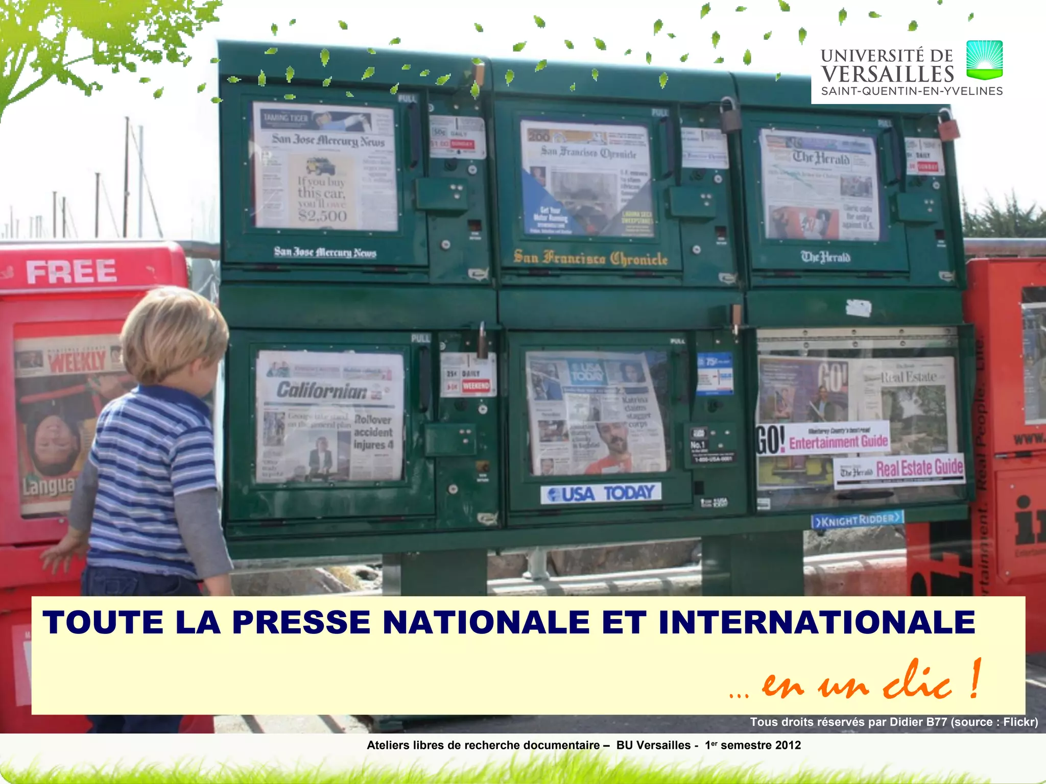 Factiva est une base de données de presse comprenant 31 000 sources de 200 pays et offrant des informations en 26 langues, incluant des articles de journaux, des revues professionnelles et des dépêches d'agences. Les utilisateurs peuvent accéder à Factiva via le site de l'université, effectuer des recherches avec des filtres avancés et exporter des articles. De plus, les étudiants parisiens peuvent consulter le journal 'Le Monde' en ligne grâce à un partenariat avec l'université numérique de Paris.