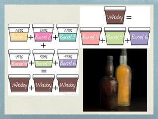 Le document traite des différentes catégories de whisky écossais, en particulier le blended scotch et le single grain scotch, en décrivant leur production et des distilleries spécifiques. Il met en évidence l'importance du blended scotch qui représente 89% des ventes de whisky écossais. Quelques exemples de marques célèbres comme Glenlivet et Johnnie Walker sont également mentionnés, illustrant l'art de l'assemblage.