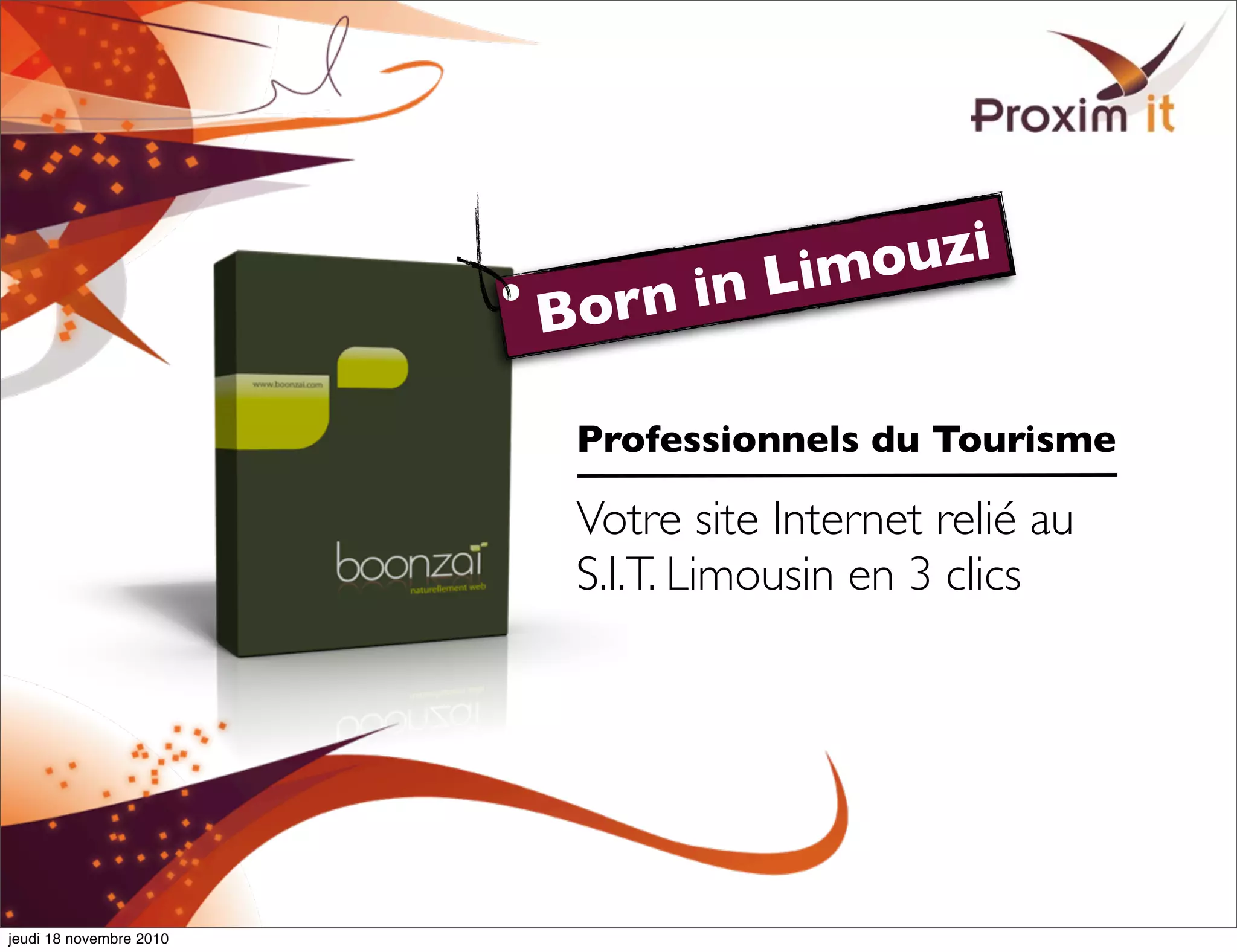 Le document présente une solution de création de site internet dédiée aux professionnels du tourisme dans le Limousin, offrant une interface simple, un tarif avantageux, et un accès à une base de données touristique. Plus de 15 offices de tourisme ont déjà adopté la solution, qui permet des personnalisations variées et intègre des fonctionnalités modernes comme le social bookmarking. Des évolutions futures, incluant un service multilingue et de nouveaux thèmes, sont également envisagées.