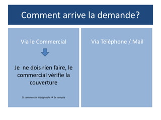 Le document décrit le processus de gestion des demandes de création de postes et de vérification de la couverture des clients dans le cadre de la gestion commerciale. Il souligne les étapes et critères essentiels à suivre en fonction de la nature du client (nouveau ou habituel) et les diverses conditions à respecter selon les cas. Enfin, il détaille la procédure pour compléter les différents onglets et champs liés à la création ou modification d'un poste.