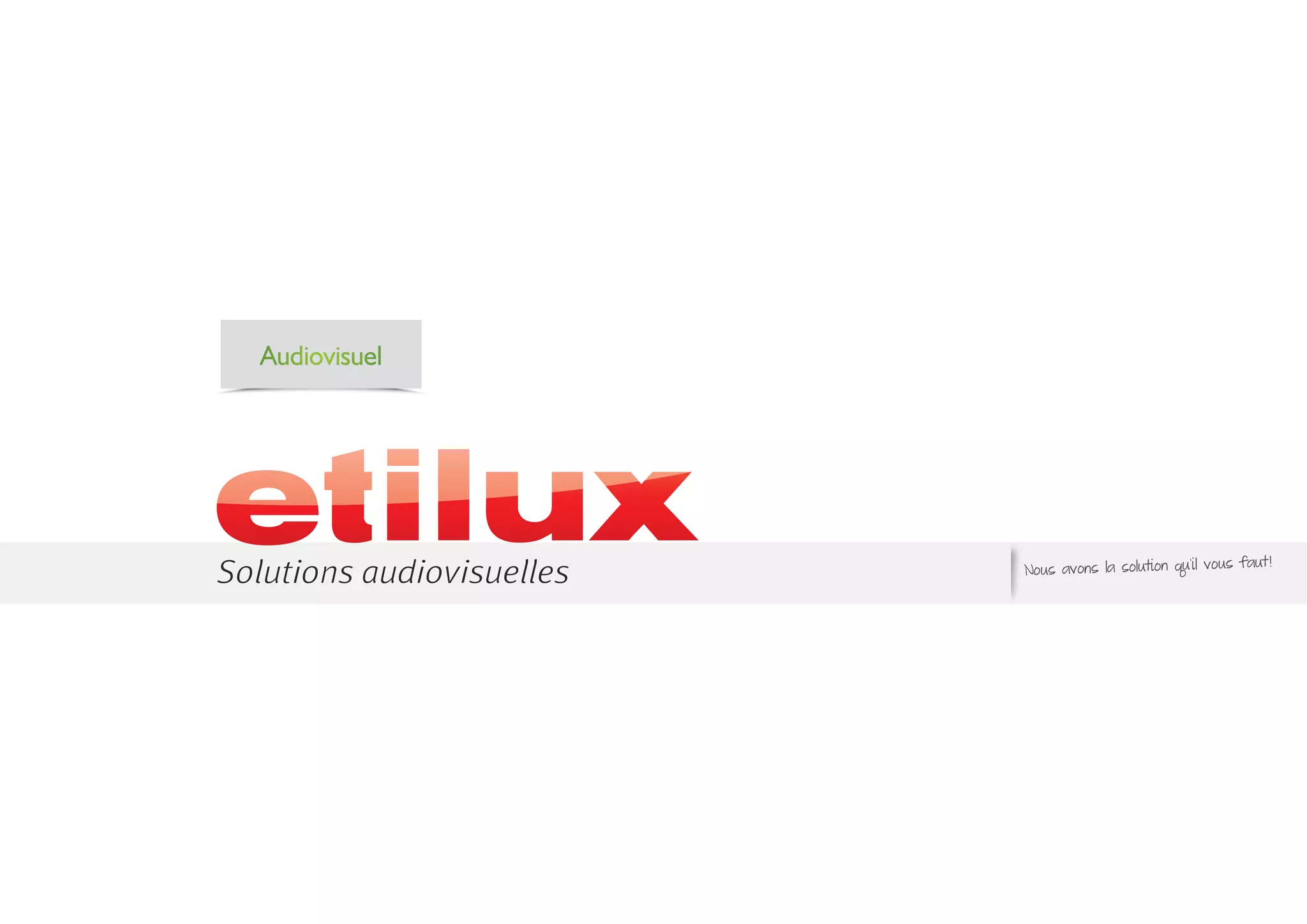 Le document présente des solutions audiovisuelles, y compris la vente et la location de matériel ainsi que des services de gestion de projet et de maintenance. Il décrit des installations pour des systèmes audiovisuels interactifs, des salles de conférence et des solutions de visioconférence, mettant l'accent sur des réalisations à l'aide de technologies récentes. Des marques partenaires comme Bose, Mitsubishi et AMX sont mentionnées pour divers équipements et systèmes.