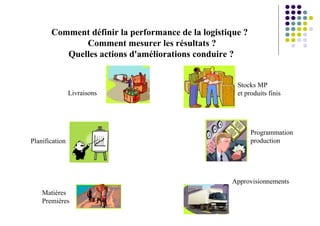Le document traite de l'audit logistique, en distinguant les étapes de préparation, réalisation et suivi, tout en soulignant l'importance de mesurer la performance logistique des entreprises. Il présente plusieurs référentiels d'audit et de meilleures pratiques, notamment le modèle SCOR, qui aide les PME à optimiser leurs processus logistiques. Les témoignages d'entreprises montrent comment un audit supply chain a permis d'identifier des leviers logistiques et d'améliorer la performance.