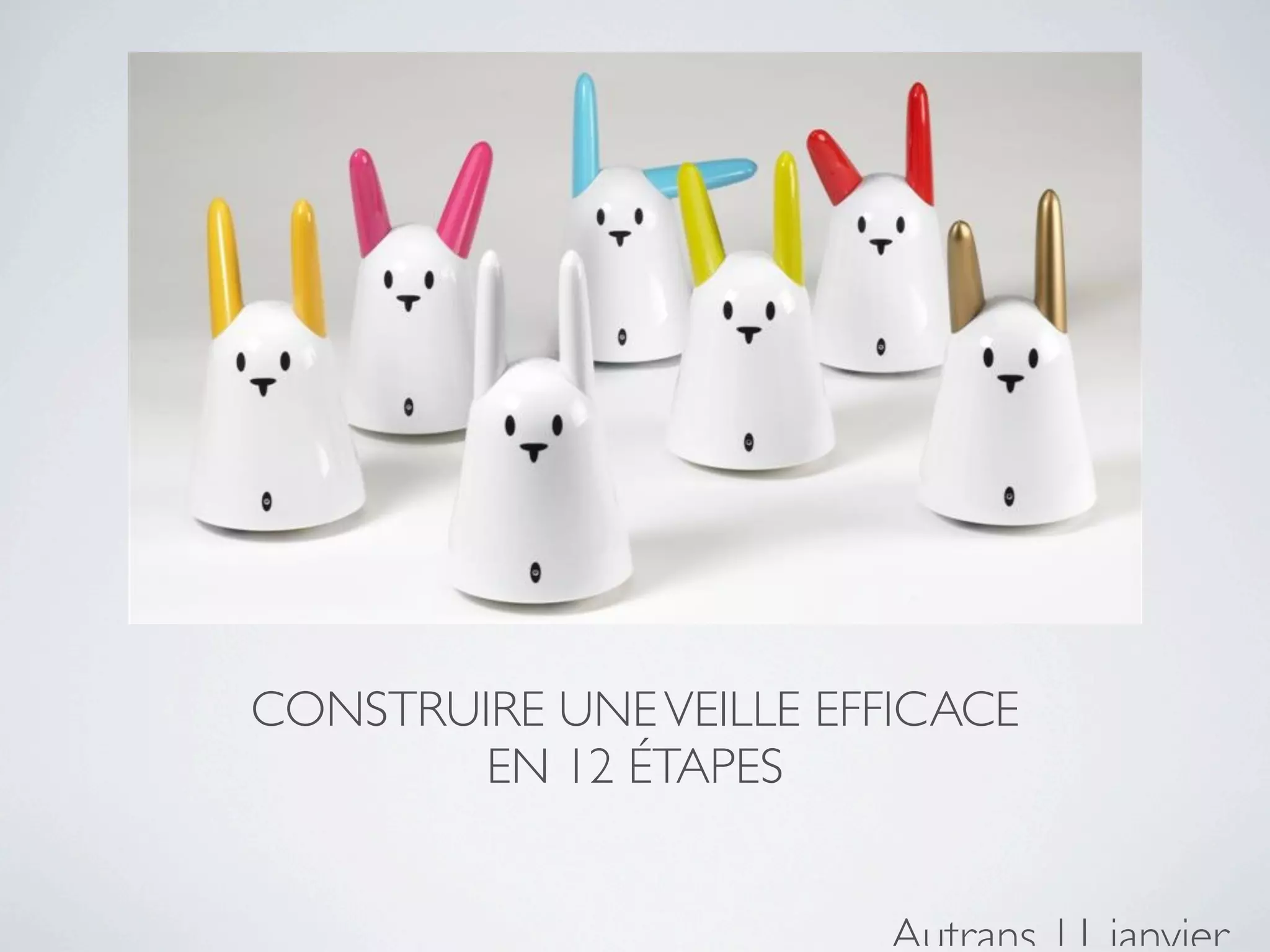Le document présente une méthode en 12 étapes pour établir une veille efficace, incluant la définition des objectifs, la sélection de sources, et la création de cercles de veille. Il met l'accent sur l'importance de l'intelligence externe et de la collaboration avec divers acteurs pour enrichir le processus. Divers outils, tels que Google Alerts et Evernote, sont recommandés pour optimiser la gestion de l'information.