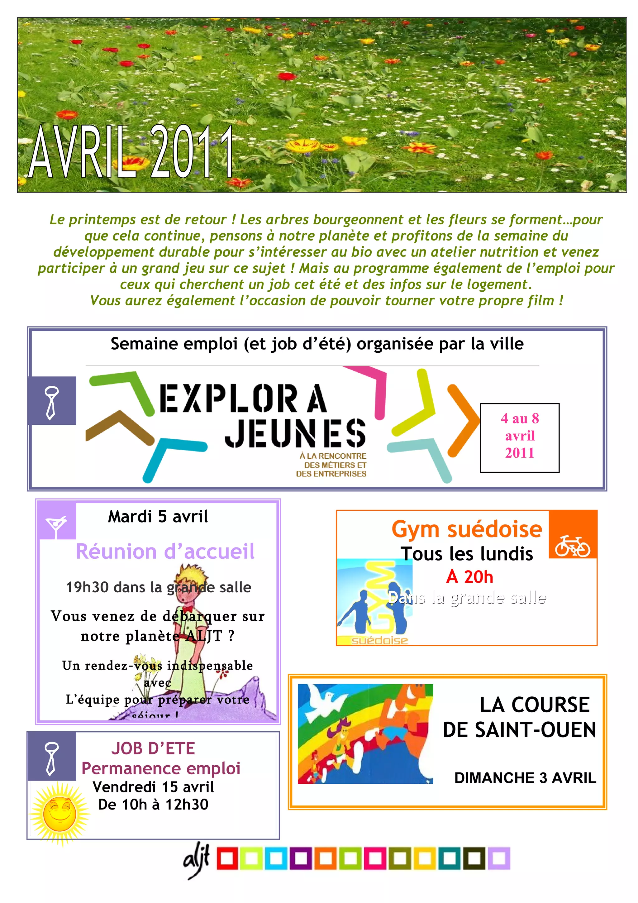 La semaine du développement durable propose des activités axées sur la nutrition bio, des ateliers et un grand jeu pour sensibiliser à l'environnement. Des opportunités d'emploi d'été et des informations sur le logement seront également disponibles du 4 au 8 avril 2011. Les participants pourront s'engager dans la création d'un court-métrage et divers ateliers sont prévus tout au long du mois.
