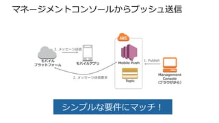 Le document se concentre sur les services cloud d'AWS et leur utilisation dans le développement d'applications mobiles. Il mentionne divers outils et langages de programmation compatibles, tels qu'iOS, Android, et des frameworks comme Visual Studio et Eclipse. De plus, il aborde les notifications push via différents services comme Amazon SNS et les intégrations avec des plateformes mobiles.