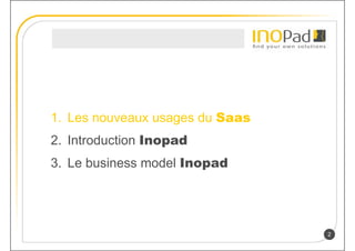 Inopad est une plateforme collaborative qui facilite l'accompagnement à distance, le diagnostic en ligne et le conseil professionnel, visant à améliorer la performance des individus et des équipes. Le SaaS permet aux entreprises d'externaliser la maintenance et l'hébergement d'applications tout en optimisant les coûts selon l'utilisation. Inopad s'adresse à divers utilisateurs, notamment des PME et des groupes internationaux, cumulant plus de 4700 utilisateurs uniques.