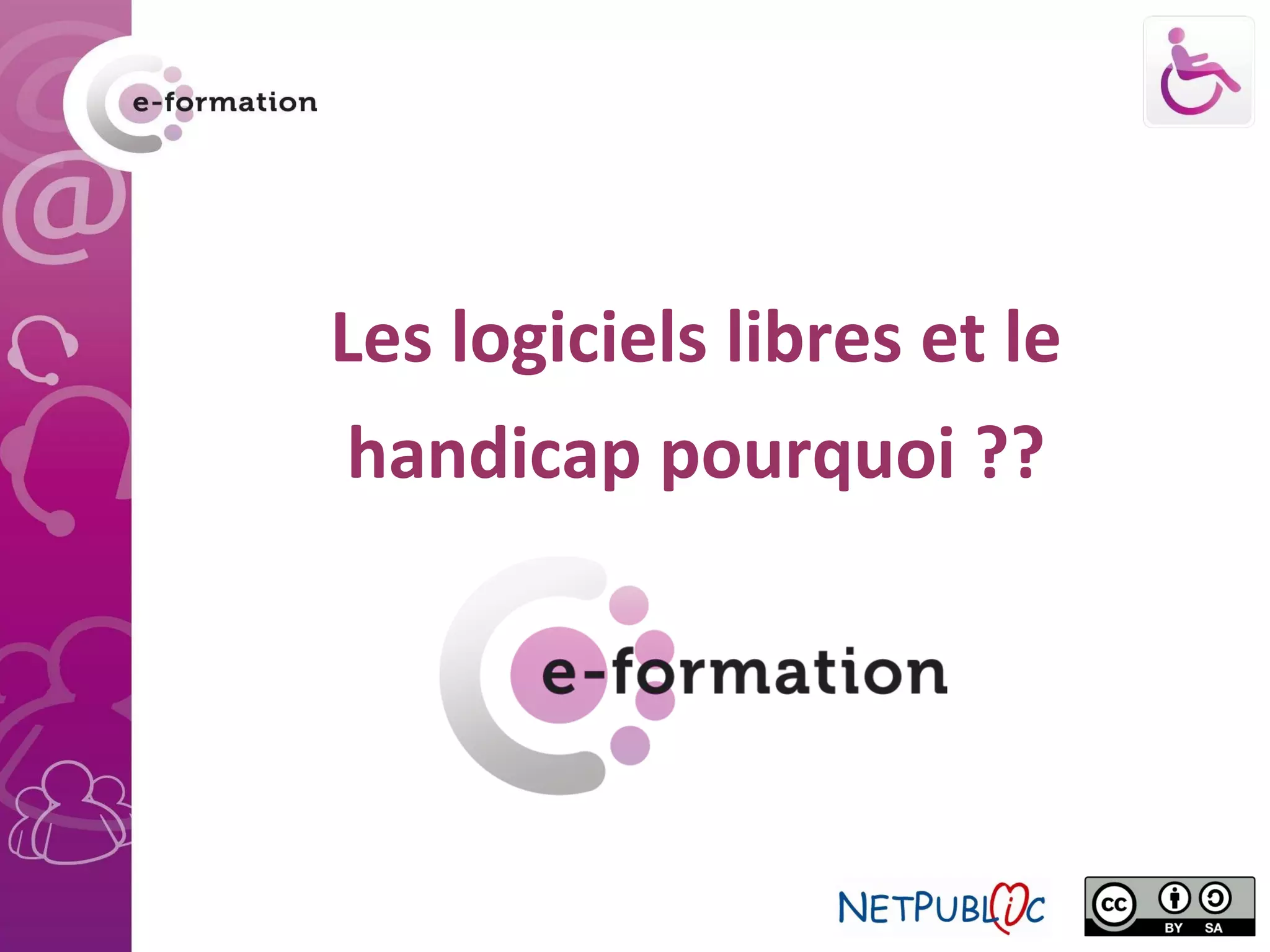 Le document aborde l'importance des logiciels libres pour les personnes handicapées, soulignant les quatre libertés fondamentales : utiliser, étudier, copier et modifier. Il met en avant les avantages de ces libertés, comme la personnalisation des outils et le renforcement de l'indépendance des utilisateurs. Enfin, il souligne comment ces pratiques peuvent favoriser l'émergence de solutions adaptées et durables grâce à une communauté engagée.