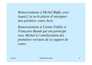 Ce document est une introduction complète à la programmation en Java, abordant des sujets tels que la compilation, l'exécution de bytecode, et les concepts de programmation orientée objet. Il présente également les spécifications de Java, les différentes éditions comme Java SE, EE et ME, ainsi que l'utilisation des applets. Enfin, il décrit l'architecture des programmes Java et les interactions entre objets.