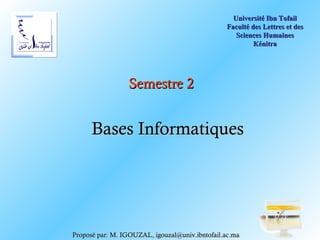 Le document présente les bases de l'informatique, incluant l'histoire des ordinateurs, leurs composants matérielles et logicielles, ainsi que leurs domaines d'application. Il aborde également le fonctionnement des ordinateurs et fournit des informations techniques sur le matériel comme le processeur, la mémoire vive et les périphériques. Enfin, des travaux pratiques sont proposés pour illustrer la diagnostic de matériel informatique.