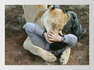 Le document présente Kevin Richardson, un expert animalier qui travaille sur une réserve faunique près de Johannesburg, en Afrique du Sud. Il est connu pour sa proximité avec les lions, ainsi que son expérience avec d'autres animaux tels que les guépards et les hyènes. La narration se déroule le 16 janvier 2010.