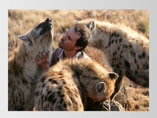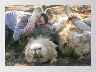 Le document présente Kevin Richardson, un expert animalier travaillant dans une réserve faunique près de Johannesburg, en Afrique du Sud. Il est connu pour sa capacité à interagir avec des lions, des guépards, des léopards et des hyènes. Ce diaporama sonore accompagne une brève introduction à son travail et à sa passion pour la faune sauvage.