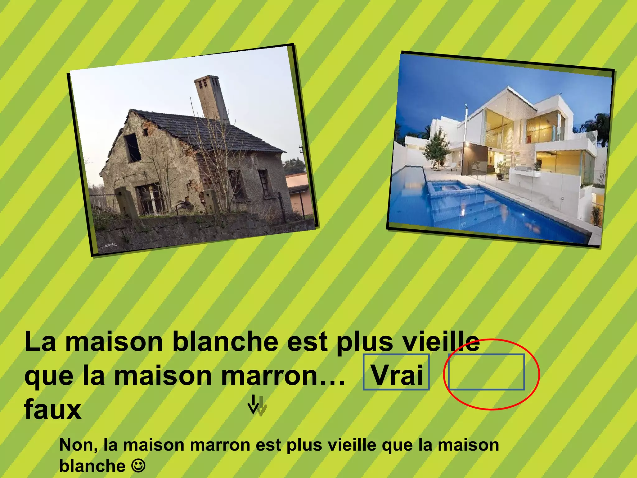 Le document compare différentes affirmations concernant des objets et des personnes, définissant des vérités ou des faussetés. Il énonce des comparaisons telles que l'âge des maisons, la longueur des pantalons, et les prix des téléphones. Les réponses aux comparaisons sont souvent suivies d'une remarque humoristique.