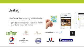 Le document présente une stratégie pour le marketing mobile, soulignant l'importance de la géolocalisation et de l'entrepreneuriat étudiant. Il aborde également le développement du mobile depuis ses débuts, les types d'applications, et l'évolution du marché du marketing mobile, qui reste sous-exploité. Enfin, il encourage les entreprises à investir davantage dans le marketing mobile pour se différencier de la concurrence.