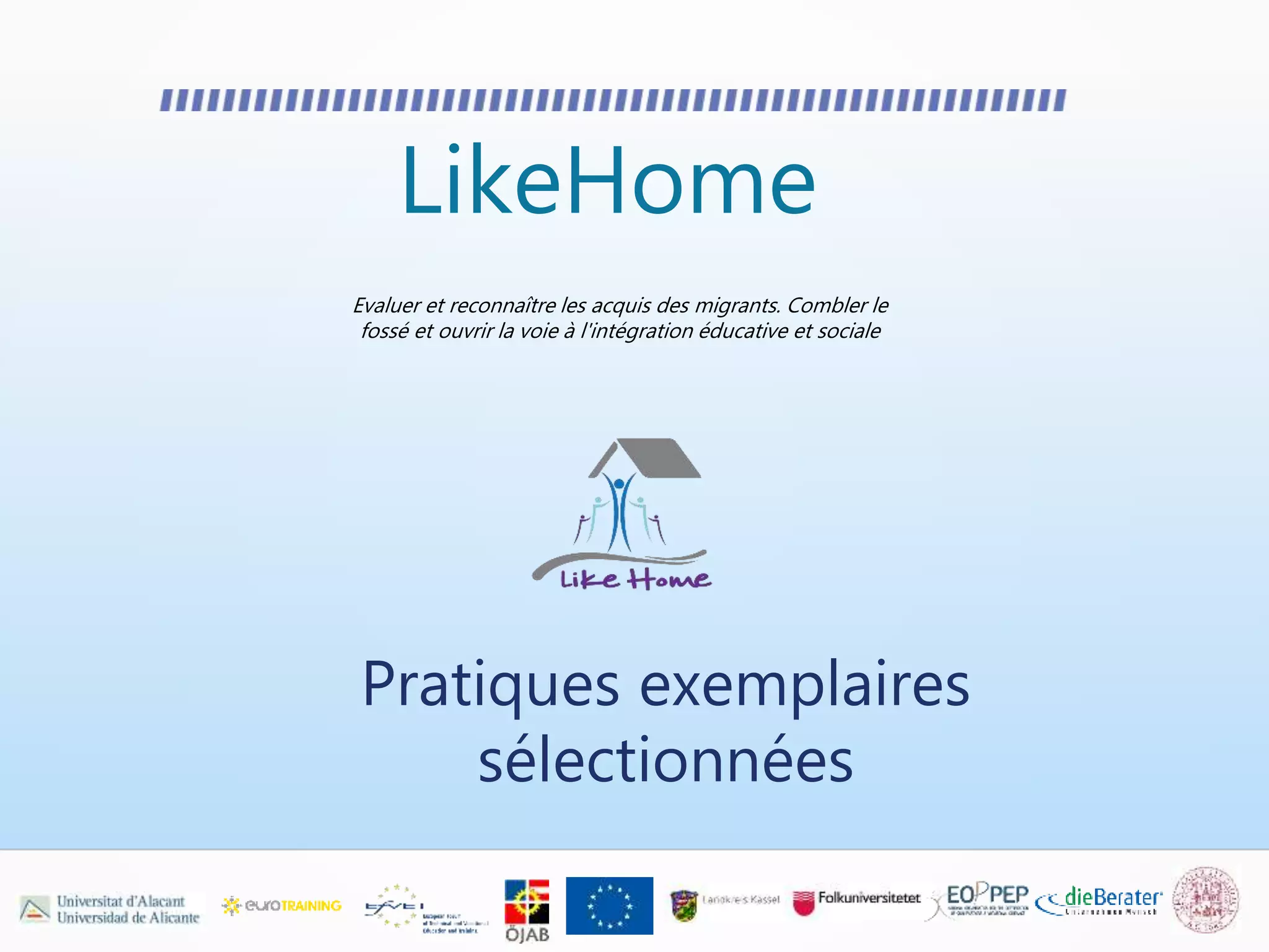 Le projet Likehome vise à évaluer et reconnaître les compétences des migrants, en particulier les nouveaux arrivants et réfugiés, pour faciliter leur intégration éducative et sociale. Il met en œuvre sept pratiques exemplaires, telles que la reconnaissance des acquis et le développement de bases de données sur les qualifications, afin d'améliorer la certification des connaissances préalables des migrants. L'initiative inclut également des programmes de formation linguistique et de transition pour soutenir leur employabilité.